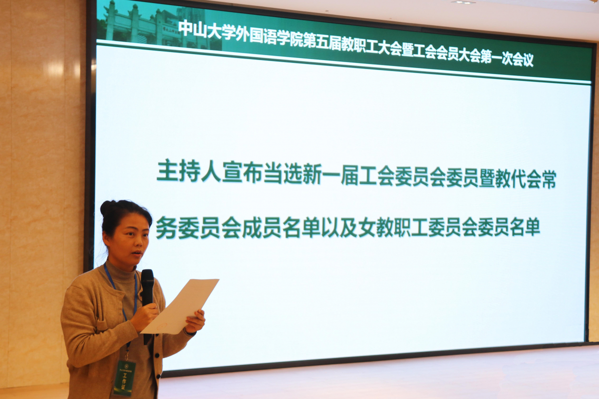 在预备会议上,黄涵梓副书记作了筹备工作报告,并宣布了外国语学院第五届工会委员会委员暨教代会常务委员会成员候选人名单。随后,黄山书记宣读了《外国语学院第五届工会委员会和教代会常务委员会选举办法》和《中山大学外国语学院第五届教职工大会暨工会会员大会第一次会议议程》,以及总监票人、监票人、计票人名单,大会人员举手表决通过。