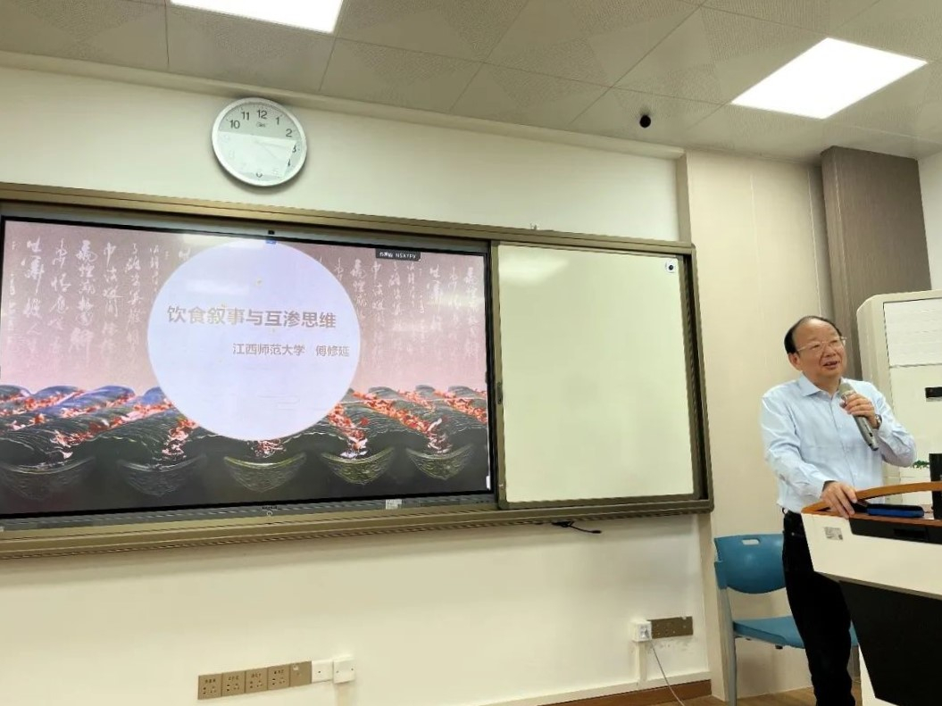 讲座结束后,傅修延教授与现场的同学们展开热烈互动,并回答了同学们的提问。他还热情地为同学们推荐了关于饮食叙事研究的参考书籍,深化了大家对相关学术话题的认知。