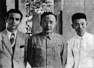 他住在一家楼上,几乎没有家具。书高高地堆在一个泥墙角落上。一叠一叠的杂志也是摊在地上。他穿的是褪色的旧衣服,但是很整洁。他不顾自己经济不宽裕,坚持邀我和辛笛这两个客人明天到一个酒楼去,口口声声说,“只是一顿便饭,我做东道主,花不了几个钱。”我们为他的磊落气概和诚恳态度所感动,终于不好推辞。