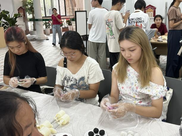 9月27日上午,我院与药学院(深圳)在学院一楼“校友之家”联合举办“‘药’你相聚,共‘语’中秋”主题活动。从新同学到老朋友,包含民族学生、国际学生和外籍教师在内的两院师生踊跃参与,学院党委副书记金凤、院长助理肖明文,辅导员梁一川、戴震等老师纷纷加入,与同学们共迎佳节、共话团圆。大家亲手制作传统美食、体验传统文化,在欢声笑语中共度美好时光。