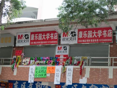 Auf dem Campus befinden sich zwei Buchhandlungen. Eine davon gehört zur Universitätsverwaltung und verkauft meistens Lehrmaterialien. Die andere Buchhandlung ist in privater Hand und liegt auf der Yuandong-Straße. Hier werden Materialien für diverse Tests, z.B. für TOFEL, GRE, BEC usw. verkauft. Beim Kaufen dort kann man einen Rabatt von 15% bekommen.
