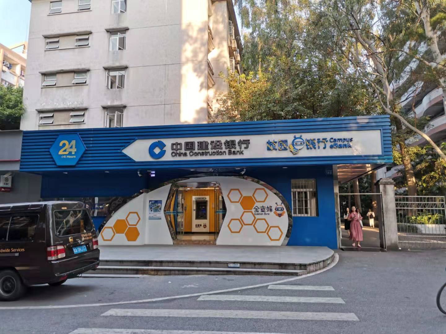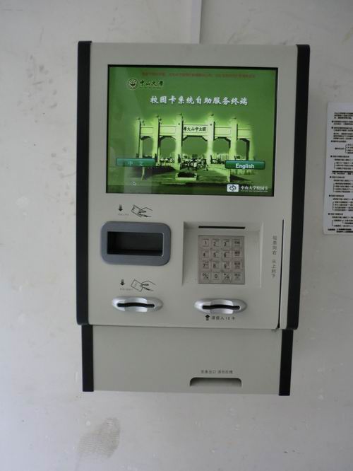 Hier gibt es drei ATM-Räume von ICBC, Bank of China und China Construction Bank. Seit 2010 wurde die Bankkarte von Bank of China ins Finanzsystem an der Uni eingeführt. Jeder Student muss die Bankkarte von Bank of China benutzen, um die Studiengebühren zu bezahlen. Trotzdem sind die meisten Studenten bei ICBC, mit dem das alte Finanzsystem funktioniert. An den Geldautomaten kann man gut Geld abheben, einzahlen oder überweisen.