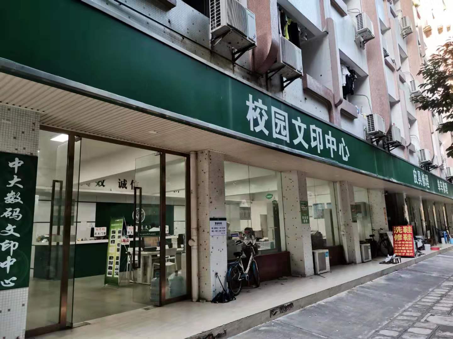 Es gibt nur eine Wäscherei auf dem Campus. Sie befindet sich an dem Kopier- und Druckladen „Xiaoyuan Wenyin Zhongxin“. Hierhin bringen die Studenten normalerweise ihre Anzüge zur Trockenreinigung. Die Preise dafür sind akzeptabel.