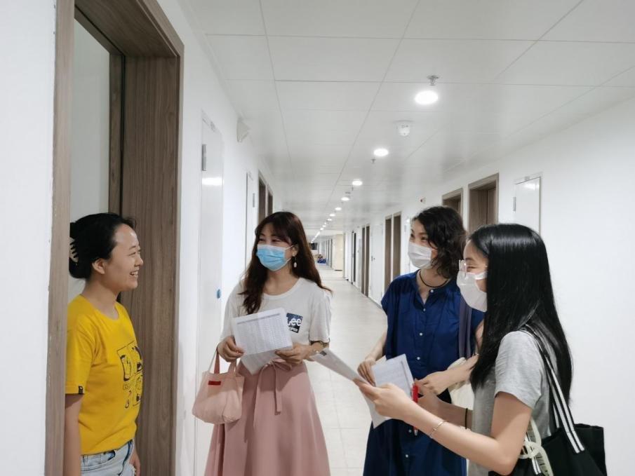 9月1日下午,外国语学院党委书记黄山、副院长金檀与学院团委书记林璐前往硕博士新生男生宿舍进行走访慰问;院长助理江晖、研究生班主任王欣、研究生科研助理沈丽娜于当晚走访学院硕博新生女生宿舍。在各个寝室,老师们亲切地询问新生们的求学经历和校园适应情况,并热心解答疑问,有针对性地提出意见和建议。外院硕博士新生宿舍位置相对集中,老师们鼓励新生彼此在学习上相互勉励,在生活上相互照应。新生们则普遍表示,寝室条件超乎预期,非常满意,自己一定会在良好的学习环境之中奋发图强,更上一层楼。