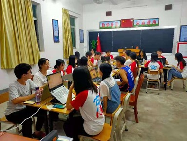 19级法语系的曾灿烁同学已经是第二年参与支教活动。这次,经验丰富的他担任“心葵志愿者团队”的“教导主任”,在潮安区浮洋镇六联小学统筹整个队伍的教务与后勤工作。与支教小学的负责人沟通,每天在微信群跟家长汇报孩子们的出勤状况确保安全,及时处理停水、台风、暴雨等突发性事件……支教队的工作总是细致且繁杂。他们的挑战无处不在:由于校方的宿舍床位有限,三十名成员只能把空余的教室当作宿舍,席地而睡,饮食也必须自己负责。但潮湿闷热的天气、坚硬的水泥地板与简陋的卫生设施并没能阻挡支教队员们的脚步,“我们每一个来到乡镇小学的成员,都做好了吃苦的准备”。
